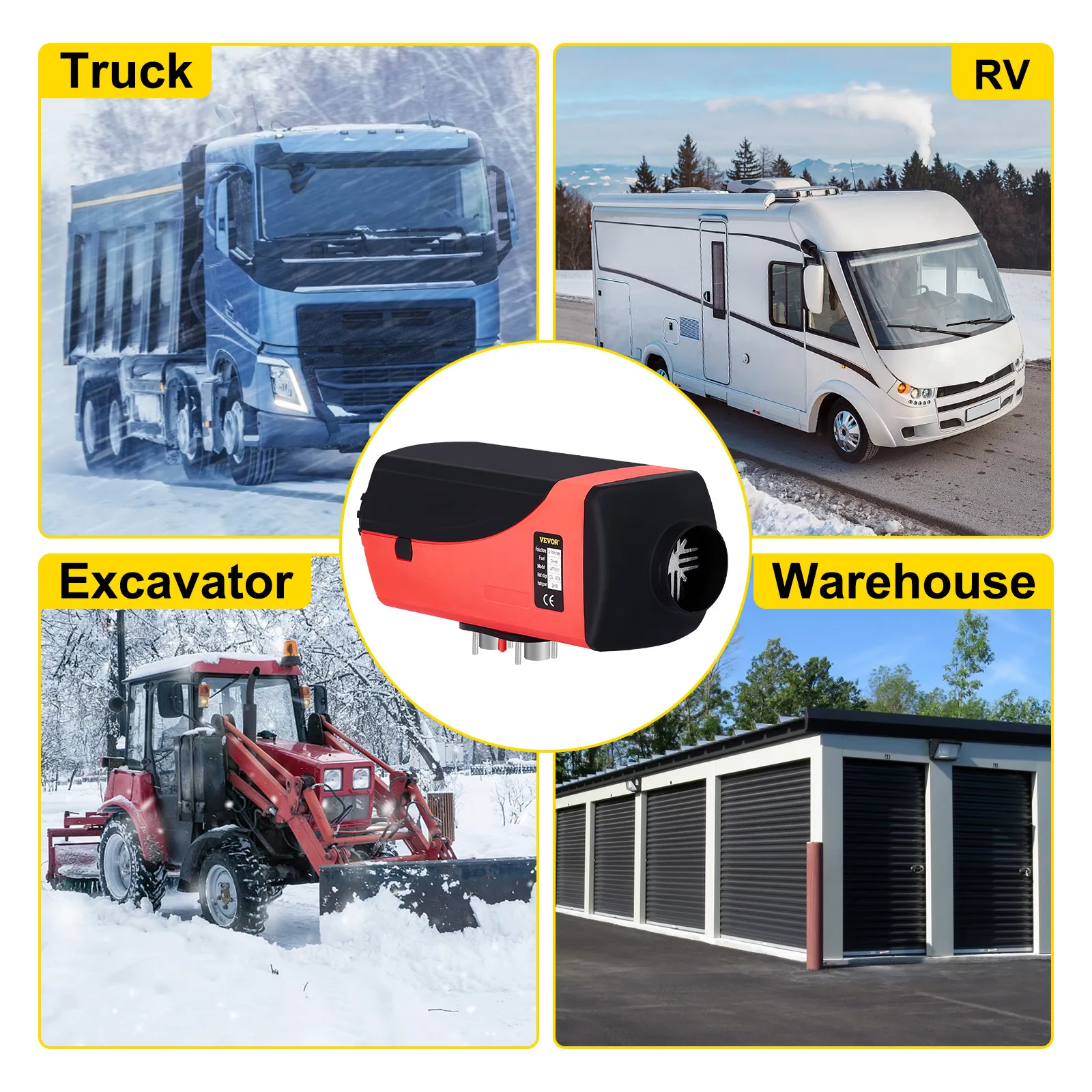 Ta nagrzewnica powietrza na olej napędowy jest powszechnie stosowana do ogrzewania kabin różnych pojazdów z silnikiem Diesla, takich jak samochody osobowe, pojazdy kempingowe, autobusy, samochody dostawcze, ciężarówki, łodzie itp. Nadaje się również do domu, magazynu, fabryki, biura i innych pomieszczeń wewnętrznych.