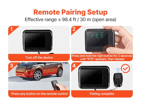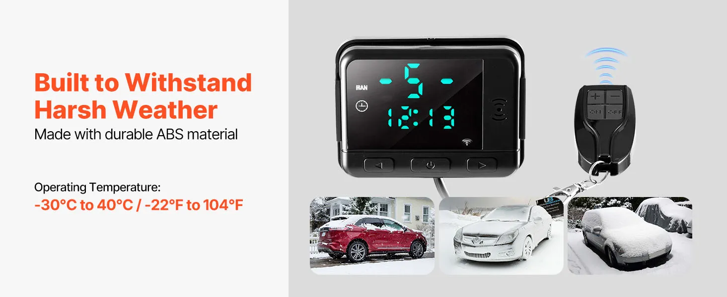 Zdalne sterowanie: Nasz zamienny przełącznik ogrzewania postojowego z silnikiem wysokoprężnym zawiera łatwe w parowaniu urządzenie sterujące 433 MHz, które działa w zasięgu ≤ 3 m (9,84 stopy). Umożliwia to zdalną obsługę i regulację ogrzewania, dzięki czemu proces ogrzewania jest bardziej przyjazny dla użytkownika i wydajny.