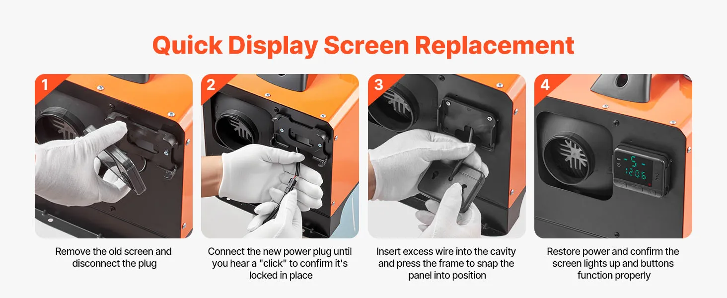Dzięki przełącznikowi ogrzewania diesla konfiguracja jest dziecinnie prosta i zajmuje zaledwie cztery kroki. Przed instalacją należy upewnić się, że uszkodzony wyświetlacz został całkowicie zdemontowany. Następnie należy sprawdzić, czy ekran i przyciski działają płynnie, umożliwiając prawidłowe sterowanie ogrzewaniem.