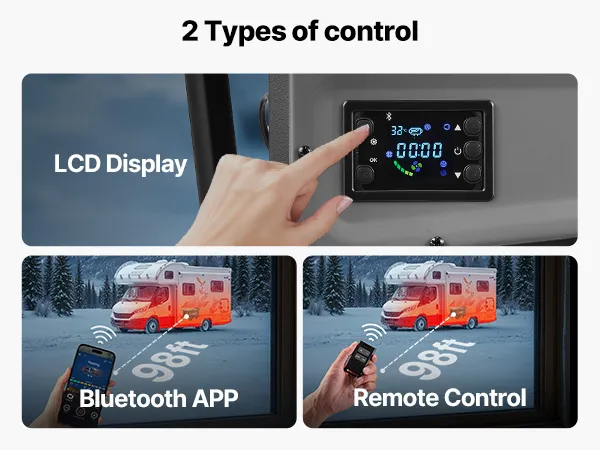 Sterowanie przez aplikację Bluetooth: Ten ogrzewacz diesla obsługuje sterowanie przez aplikację Bluetooth z odległości do 30 m. Za pomocą smartfona można ustawiać timery, podgrzewać i regulować temperaturę (8–36°C). Dla dodatkowej wygody obsługa jest również możliwa za pomocą pilota i wyświetlacza LCD.