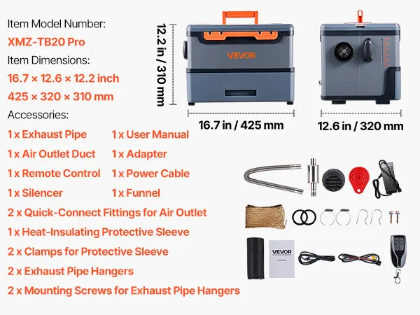 Funkcje bezpieczeństwa: Ten podgrzewacz powietrza na olej napędowy jest wyposażony w alarm CO, osłonę termiczną rury wydechowej oraz uszczelniony korek wlewu paliwa, co zapewnia bezpieczne, długotrwałe użytkowanie. Wewnętrzna płytka drukowana posiada zabezpieczenie przed przegrzaniem (≥ 518°F/270°C), zabezpieczenie przed odwrotną polaryzacją oraz zabezpieczenie przeciwprzepięciowe.