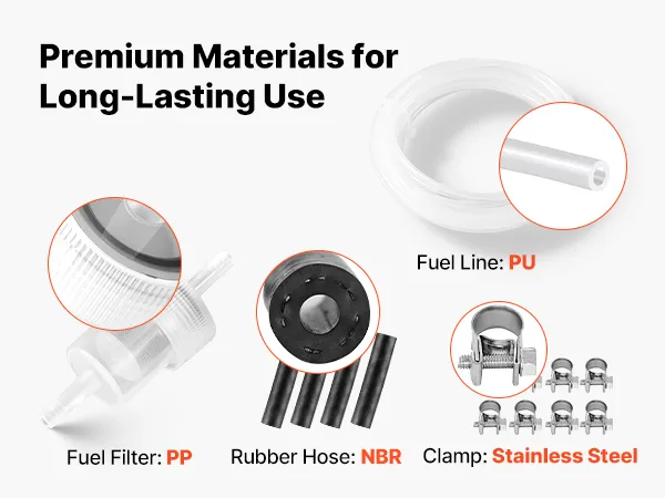 Długi przewód paliwowy: W zestawie znajdują się dwa węże o długości 16,4 stopy (5 m), które można przyciąć do żądanej długości. Ten wymienny zestaw przewodów paliwowych do ogrzewania postojowego zapewnia dodatkową długość, co umożliwia wielokrotną instalację lub wymianę – idealne rozwiązanie do częstej konserwacji.