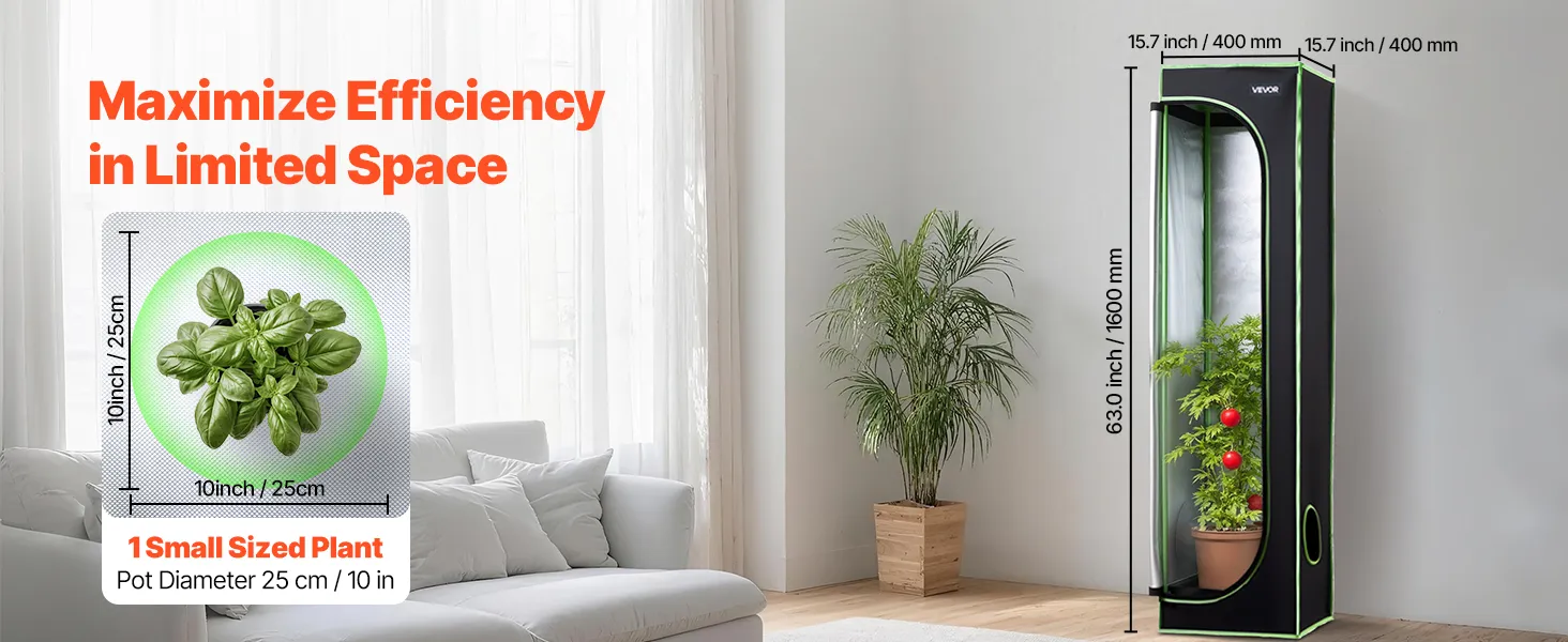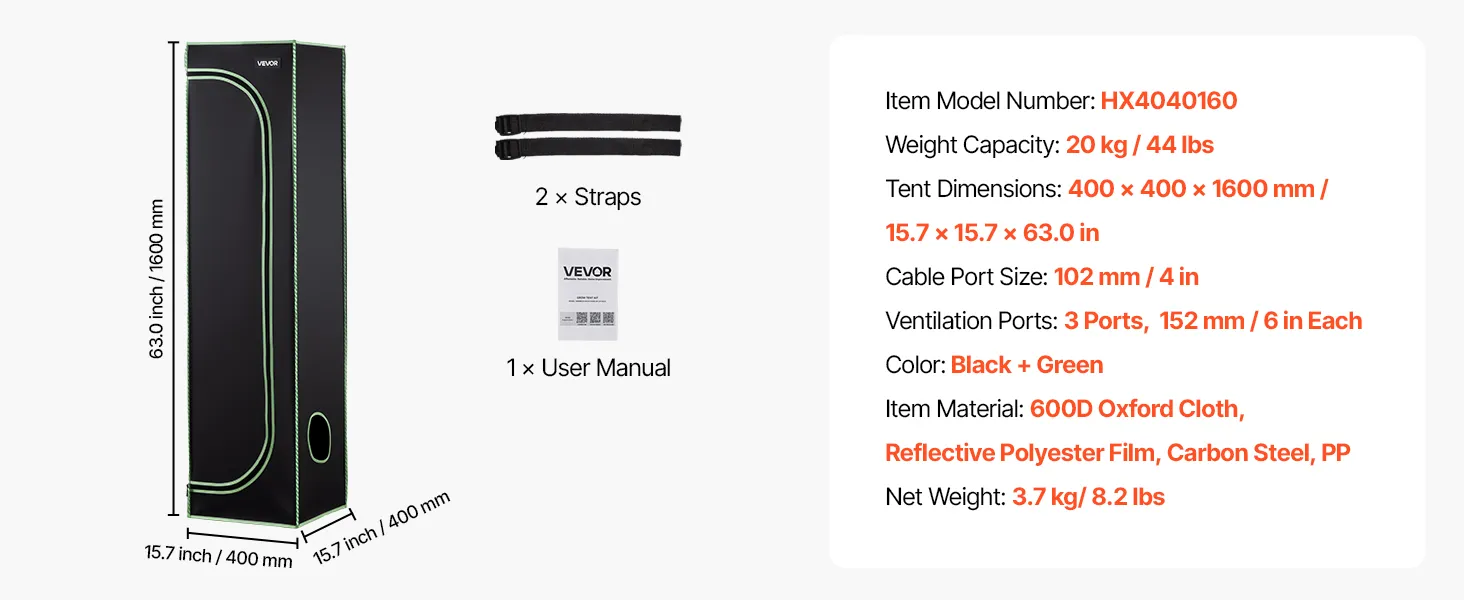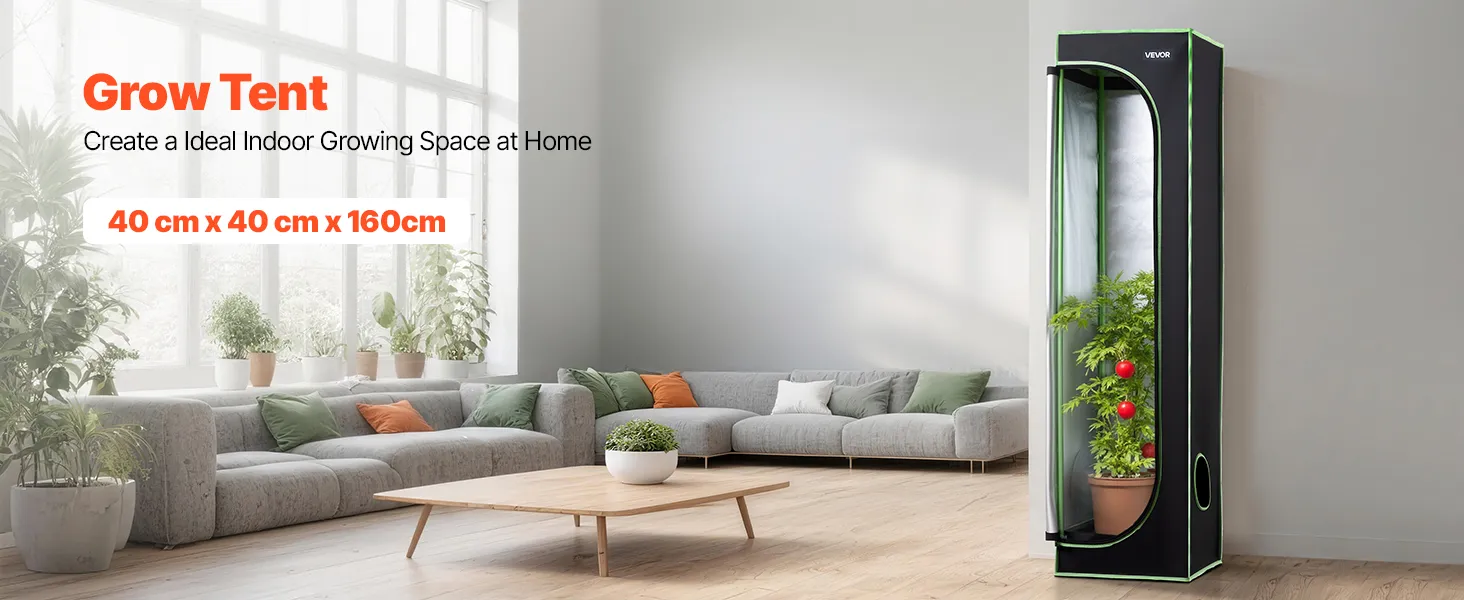 Namiot do uprawy VEVOR, 40x40x160 cm, namiot do uprawy Mylar 600D o wysokiej refleksyjności, namiot do roślin doniczkowych z oknem obserwacyjnym, tacką na podłoże i zamkiem błyskawicznym, namioty do uprawy owoców, kwiatów i warzyw w szklarniach