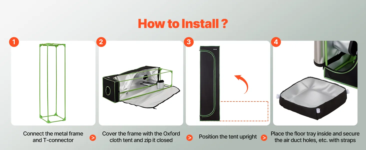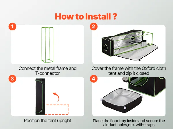 Wnętrze w 100% odblaskowe: Wnętrze wykonane jest z folii poliestrowej, która maksymalizuje odbicie światła i minimalizuje utratę ciepła, sprzyjając zdrowszemu wzrostowi roślin. Zewnętrzna warstwa wykonana jest z wytrzymałej tkaniny Oxford 600D, odpornej na rozdarcia i nieprzezroczystej. Podwójne, czarne zamki skutecznie uszczelniają wszelkie szczeliny.