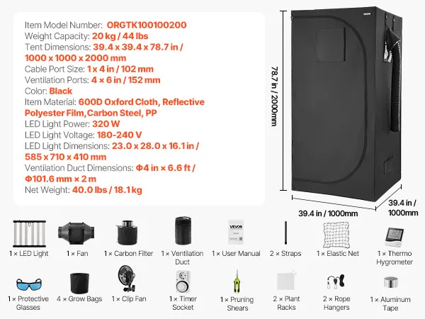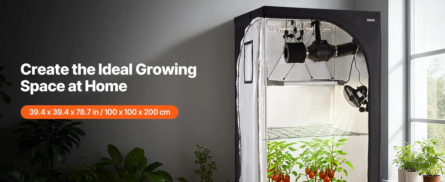 Zestaw namiotów do uprawy VEVOR, 100x100x200 cm, namiot szklarniowy z pełnospektralnym oświetleniem LED i systemem wentylacji, namiot do roślin 600D, wysoce odblaskowy Mylar, namioty do uprawy kwiatów i warzyw