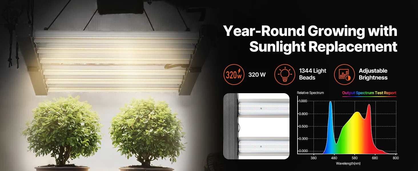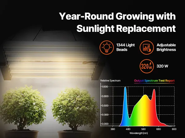 Oświetlenie LED o pełnym spektrum: Namiot do uprawy wyposażony jest w 1344 wysokowydajne żarówki LED, oferujące szerokie spektrum temperatur barwowych, które wspomaga kiełkowanie, kwitnienie i wzrost roślin, a także zwiększa plony. Intensywność światła można regulować w różnych fazach wzrostu.