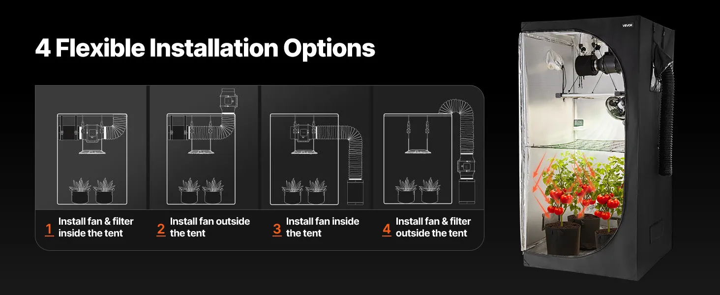 Niezależnie od tego, czy chcesz zoptymalizować przepływ powietrza, czy zaoszczędzić miejsce, nasze namioty do uprawy roślin w pomieszczeniach są kompatybilne z różnymi układami wentylatorów i filtrów, oferując elastyczność w spełnianiu różnych potrzeb związanych z uprawą roślin.