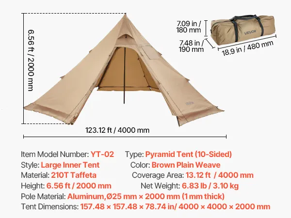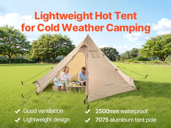 Namiot kempingowy VEVOR dla 4 osób, przenośny namiot tipi z przyłączem do kuchenki, płócienny namiot piramidalny, lekki namiot całoroczny do wędrówek, wędkowania i plecakowania, rozmiar M