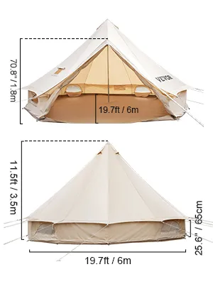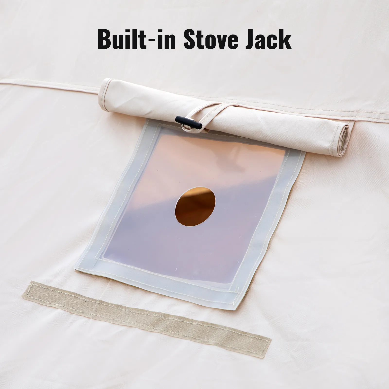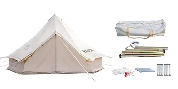 Ten wodoodporny, czterosezonowy namiot dzwonkowy wykonany jest z bawełnianej plandeki o gramaturze 300 g/m2, która jest trwała i lekka. Ponadto jest wystarczająco duży, aby pomieścić 10–12 osób i wystarczająco wytrzymały, aby wytrzymać sztormową pogodę. Do użytku zimowego dostępne jest gniazdko kuchenne, a wszystkie akcesoria są dołączone do zestawu, co ułatwia konfigurację. Dzięki temu nasz namiot idealnie nadaje się na kemping, wędrówki, wspinaczkę górską itp.