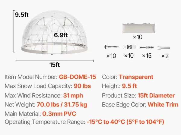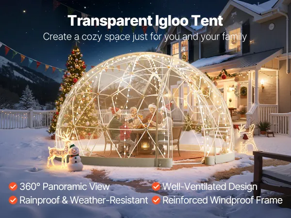 Ciesz się komfortem przez cały rok dzięki temu przezroczystemu namiotowi ogrodowemu w kształcie kopuły. Oferuje on panoramiczny widok 360°, solidną konstrukcję odporną na warunki atmosferyczne i stylowy wygląd. Ten namiot kopułowy idealnie nadaje się do ogrodów, na tarasy i na spotkania towarzyskie – to Twój przytulny azyl na świeżym powietrzu o każdej porze roku.