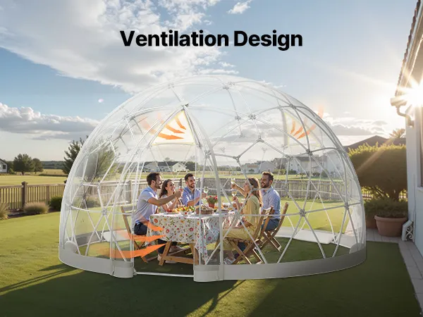A2: Namiot typu bubble wyposażony jest w trójkątne okna i drzwi rolowane, które zapewniają wentylację poprzeczną.