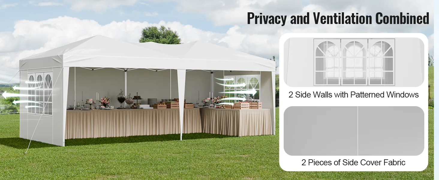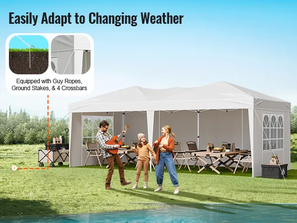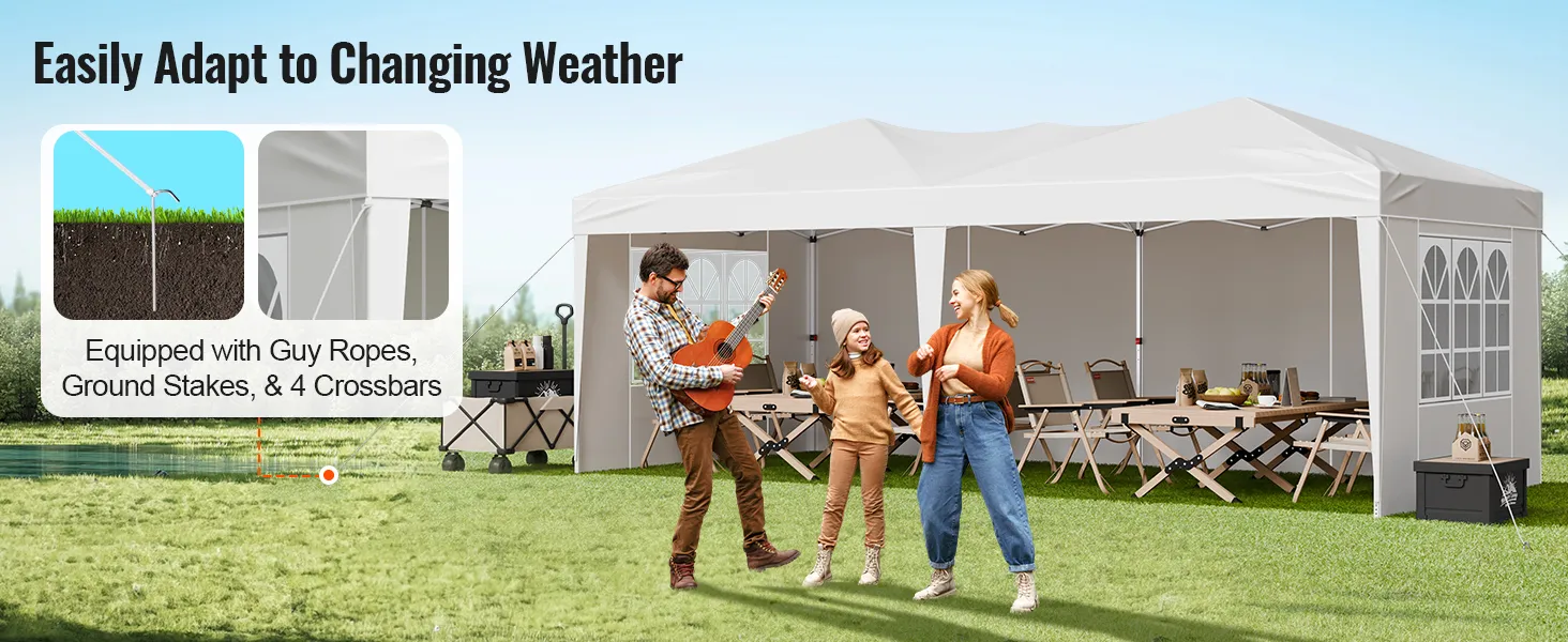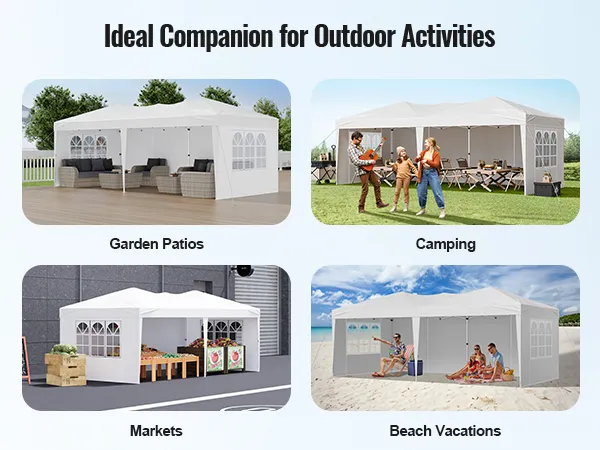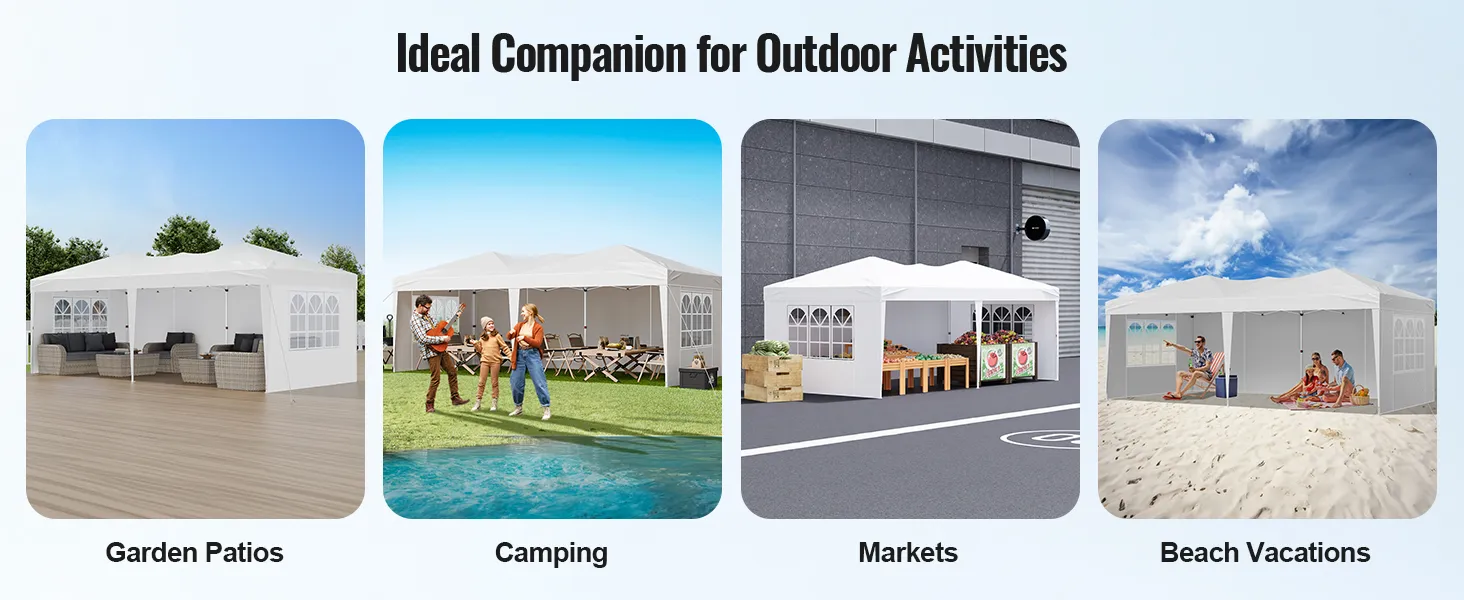 Ten rozkładany namiot idealnie nadaje się na przyjęcia ogrodowe, kempingi rodzinne, stoiska targowe lub wycieczki na plażę. Można go z łatwością dostosować do różnych aktywności na świeżym powietrzu.