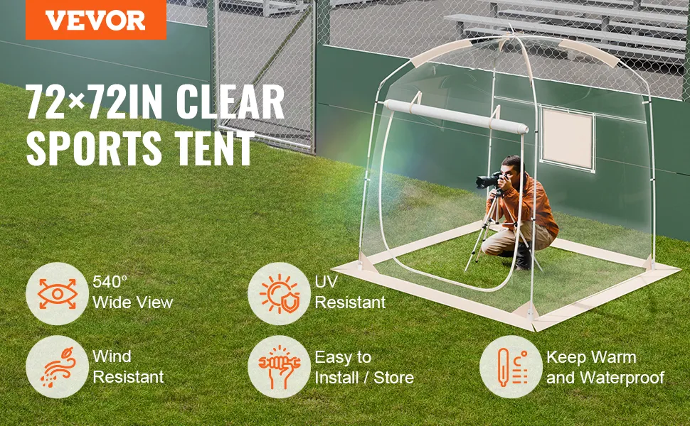Namiot sportowy VEVOR, wodoodporny namiot dla 2-4 osób, rozkładany natychmiastowo, namiot zewnętrzny z bąbelkami i przezroczystą osłoną, z klimatyzowaną osłoną do gry w piłkę nożną, futbol amerykański, softball i innych wydarzeń sportowych, parad, wędkarstwa