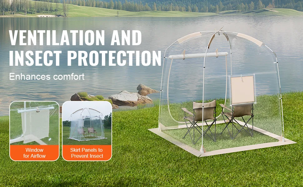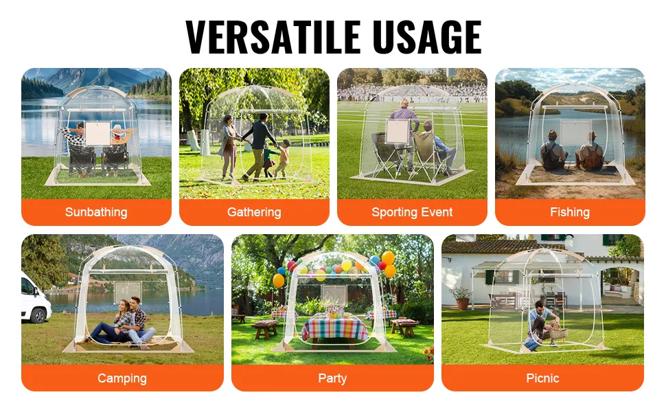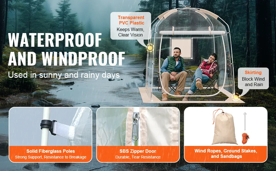 Wykonany z odpornego na rozdarcia, przezroczystego PVC, ten sportowy namiot przeciwdeszczowy zapewni Ci ciepło i suchość. Jego wodoodporna konstrukcja i solidna rama chronią przed wiatrem, pozwalając Ci cieszyć się czasem na świeżym powietrzu bez obaw.