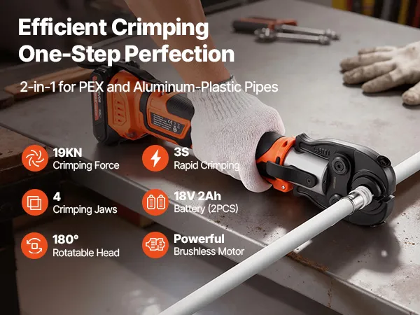 Szeroki zakres zastosowań: Nadaje się do instalacji i napraw rur w projektach mieszkaniowych i przemysłowych. Kompatybilny z kompaktowymi szczękami zaciskowymi o sile nacisku 19 kN: rury ze stali nierdzewnej zgodne z normami europejskimi (typ V/typ M), rury PEX/rury aluminiowo-plastikowe (typ U/typ TH).