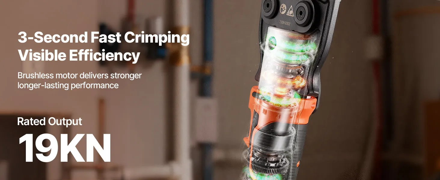 To narzędzie do zaciskania rur PEX i aluminiowo-plastikowych, wyposażone w niezwykle wydajny silnik bezszczotkowy, generuje siłę 19 kN, co pozwala na uzyskanie gładkich i szczelnych połączeń zaciskanych w instalacjach wodno-kanalizacyjnych w budynkach mieszkalnych i projektach rurociągów przemysłowych.