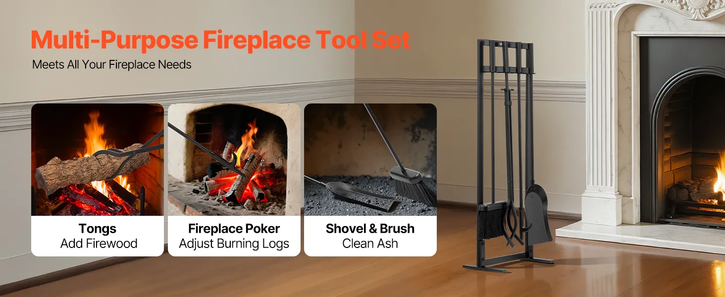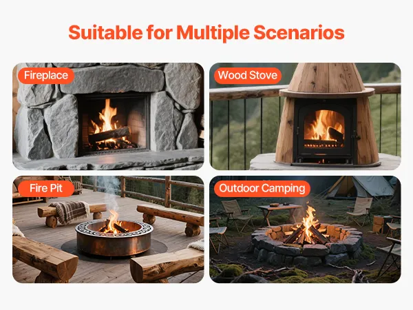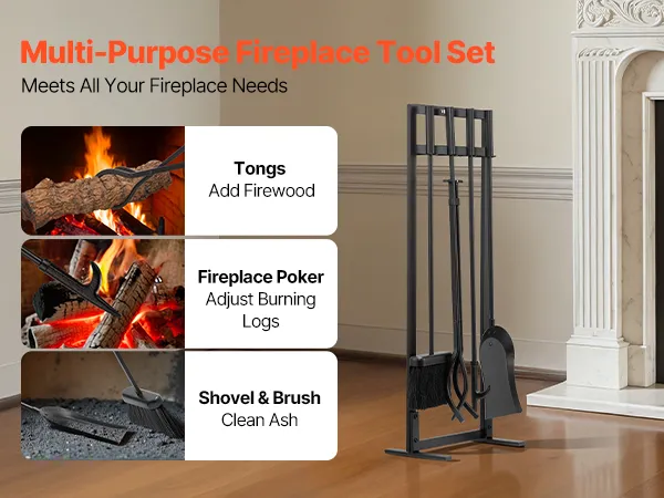 Ten zestaw narzędzi do kominka wewnętrznego jest wszechstronny i nadaje się do kominków domowych, pieców opalanych drewnem, palenisk zewnętrznych i ognisk kempingowych. Spełnia szeroki zakres zastosowań i jest niezwykle wszechstronny.
