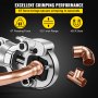 Nasze narzędzie do zaciskania jest wyposażone w głowicę obrotową 360° i wysuwane uchwyty. Możesz cieszyć się automatycznym blokowaniem narzędzia do zaciskania i bez wysiłku zmieniać szczęki między różnymi rozmiarami (1/2", 3/4", 1") w ciągu kilku sekund. Ponadto oszczędza cenny czas podczas instalowania rur i złączek miedzianych. Nie lutowanie, lutowanie lub wywijanie więcej.