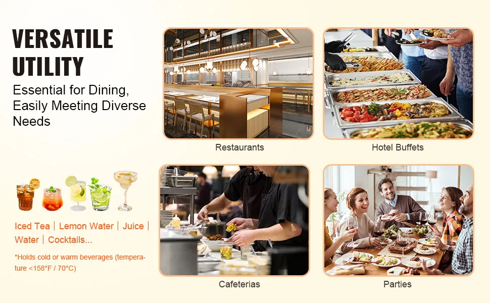 Dozownik napojów VEVOR jest przyjazny dla użytkownika. Ma szeroki otwór ułatwiający napełnianie i czyszczenie. Zdejmowana pokrywa i szczelny silikonowy pierścień zapobiegają rozlewaniu. Stalowy kran zapewnia gładkie nalewanie bez kapania. Te funkcje ułatwiają korzystanie z niego każdemu. Niezależnie od tego, czy przygotowujesz jedzenie, czy pracujesz jako zapracowany gospodarz, ten dozownik ułatwia Ci zadania. Ten dozownik oferuje wygodę, która zapewnia wydajne i przyjemne doświadczenie dla każdego. Jest idealny dla każdego, kto chce ulepszyć swoją obsługę napojów.