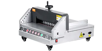 Niezależne dociskanie papieru za pomocą pokrętła, sterowanie ręczne, najpierw dociskanie, potem cięcie; do obsługi maszyny wystarczy nacisnąć przycisk.