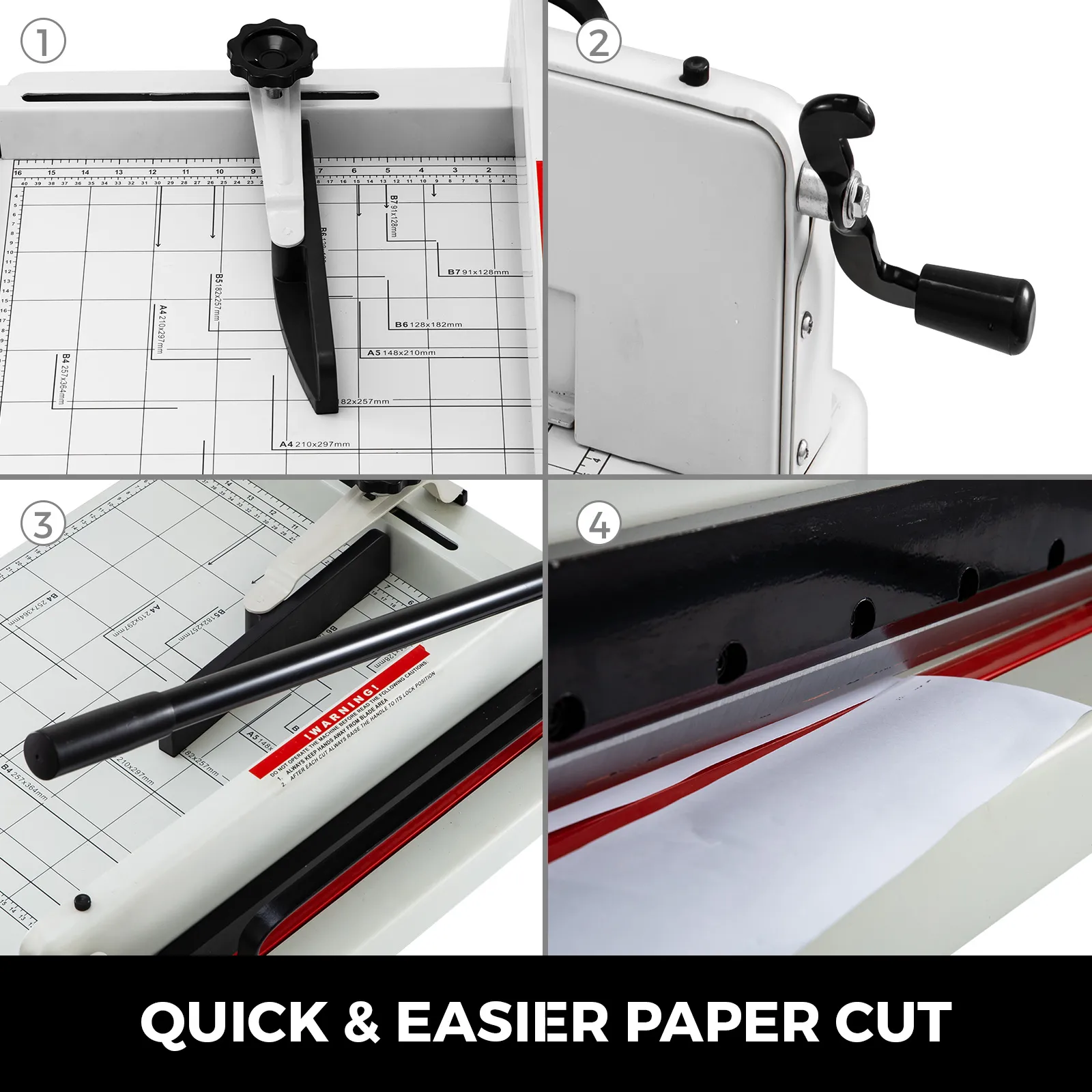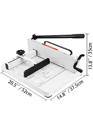 Jest to praktyczna ręczna gilotyna do papieru, która sprawdza się w codziennych lub komercyjnych zadaniach związanych z cięciem papieru. Dzięki ostremu ostrzu klasy przemysłowej o średnicy 12 cali może przeciąć maksymalnie 500 arkuszy papieru A4. Specjalna konstrukcja blokady zabezpieczającej zapewnia bezpieczeństwo podczas pracy. Produkt o wymiarach blatu, łatwy w transporcie i czyszczeniu. Niezbędny przy pracach związanych z cięciem.