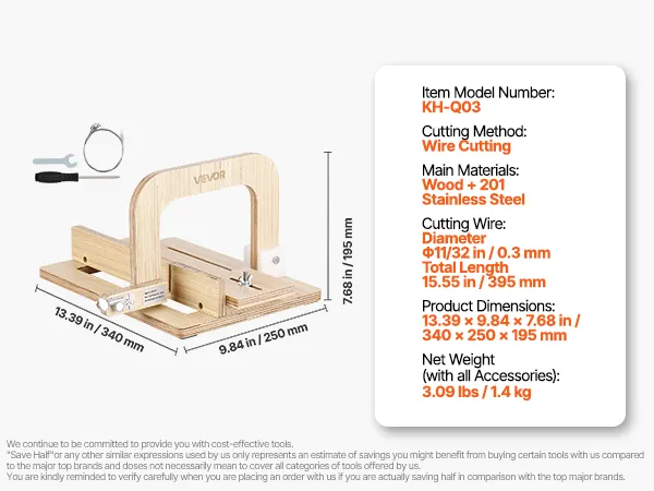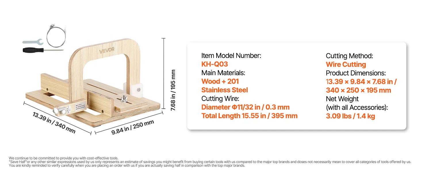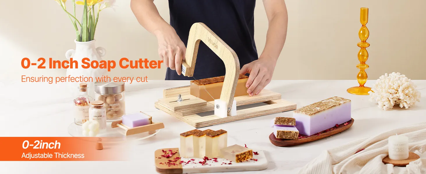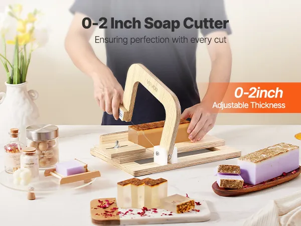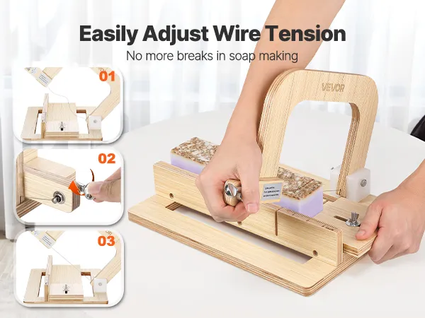 Obcinacz do mydła VEVOR o regulowanej grubości 0-2 cali, drewniany obcinacz do mydła z regulowanym naprężeniem drutu ze stali nierdzewnej, z dodatkowymi drutami, wielofunkcyjne narzędzie do cięcia DIY
