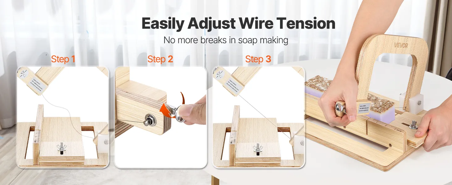 Łatwe cięcie: Ostre metalowe druty umożliwiają szybsze i czystsze cięcie. Pozwala to na wydajną produkcję mydła lub innych wyrobów rękodzielniczych bez nierównych cięć. 10 dołączonych drutów spełnia również wymagania różnych producentów mydła.