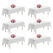 VEVOR White Tablecloths for Rectangle Tables, 6 Pack, 60 x 102 Inches, Reusable and Machine Washable Table Clothes, Wrinkle-Resistant Polyester Fabric Table Covers for Wedding, Party, Banquet