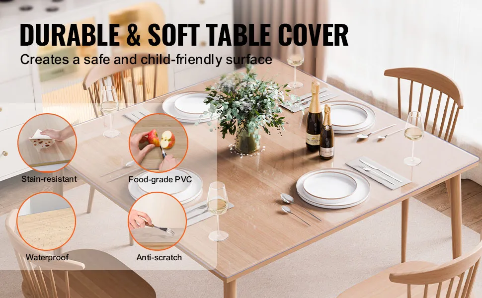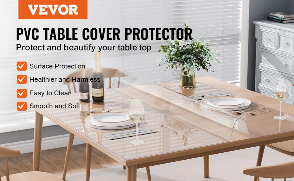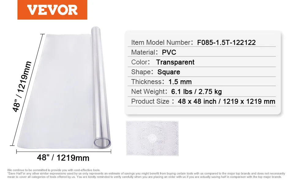 VEVOR Plastikowy obrus, 48 x 48 cali, grubość 1,5 mm, przezroczysty ochraniacz stołu, kwadratowa podkładka na biurko z PVC, wodoodporna i łatwa w czyszczeniu, pokrowiec na stół, do biura, komody, stołu jadalnego, stolika nocnego
