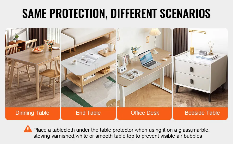 Wszechstronne: Nasze przezroczyste ochraniacze na stoły mogą upiększyć różnorodne wnętrza, takie jak domy, biura, restauracje i sale eventowe. Nadają się do stołów o fakturze drewna, takich jak stoły jadalne, blaty kuchenne, stoliki kawowe, biurka komputerowe, komody, szafki RTV i wiele innych. Odkryj nieograniczone możliwości i popraw jakość swojego życia!