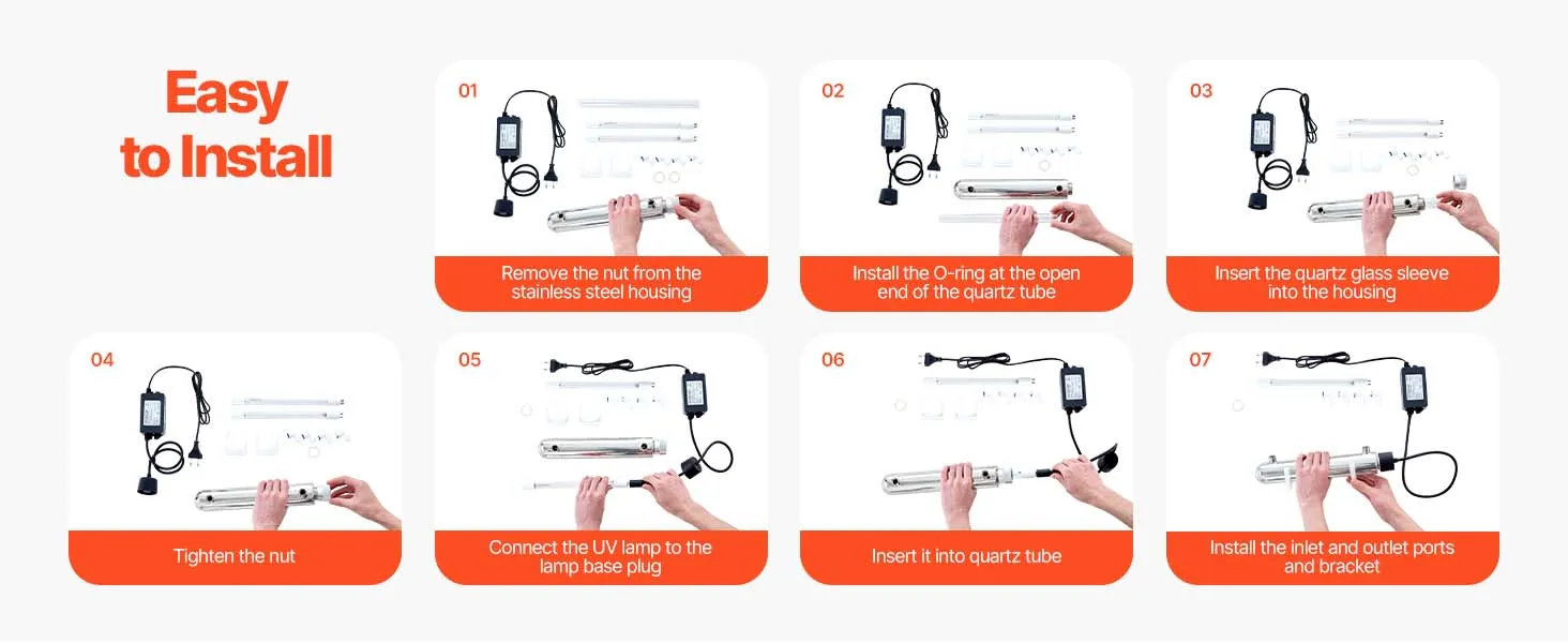 Nasz oczyszczacz wody UV został zaprojektowany z myślą o łatwości użytkowania, a jego instalacja jest prosta i szybka, dzięki czemu proces konfiguracji przebiega bezproblemowo. Zacznij używać oczyszczonej wody już teraz!