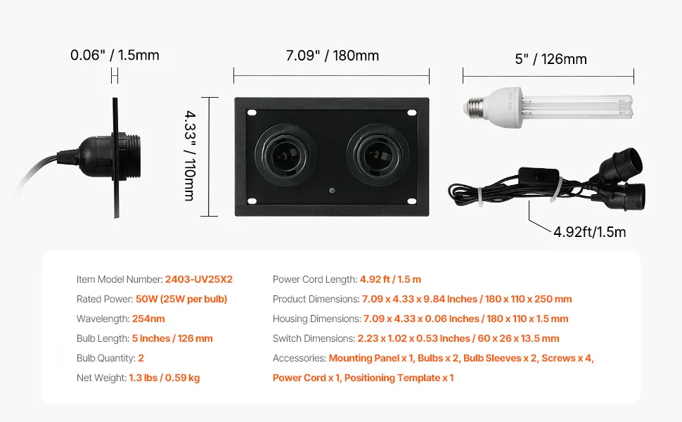 Niezawodna i trwała jakość: Każda świetlówka ma żywotność do 8000 godzin, co znacznie wydłuża całkowitą żywotność lampy UV AC. Aby zapewnić trwałość, zaleca się unikanie częstego włączania i wyłączania.