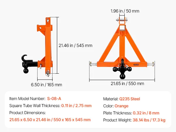 Wytrzymały i trwały: Ten 3-punktowy zaczep holowniczy ma trójkątną konstrukcję i stalową rurę o grubości 2,75 mm (0,11 cala) ze spawanymi szwami, co zapewnia stabilną konstrukcję. Oferuje wysoką nośność i wytrzymałość na ściskanie, zmniejszając w ten sposób ryzyko pęknięć i odkształceń.