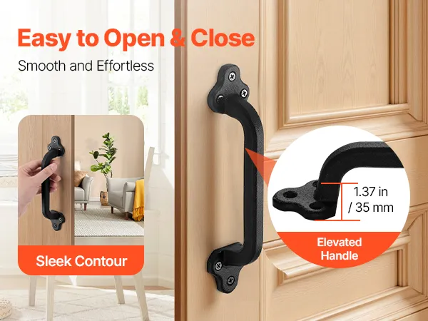 Wygodny chwyt: czarne uchwyty bramowe o wymiarach 9,09 x 1,97 x 1,93 cala / 231 x 50 x 49 mm i ergonomicznym kształcie zapewniają wygodny chwyt, co pozwala na łatwą i bezwysiłkową obsługę drzwi.