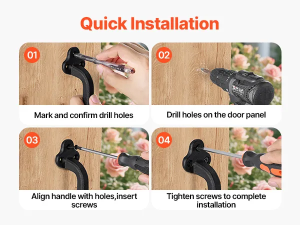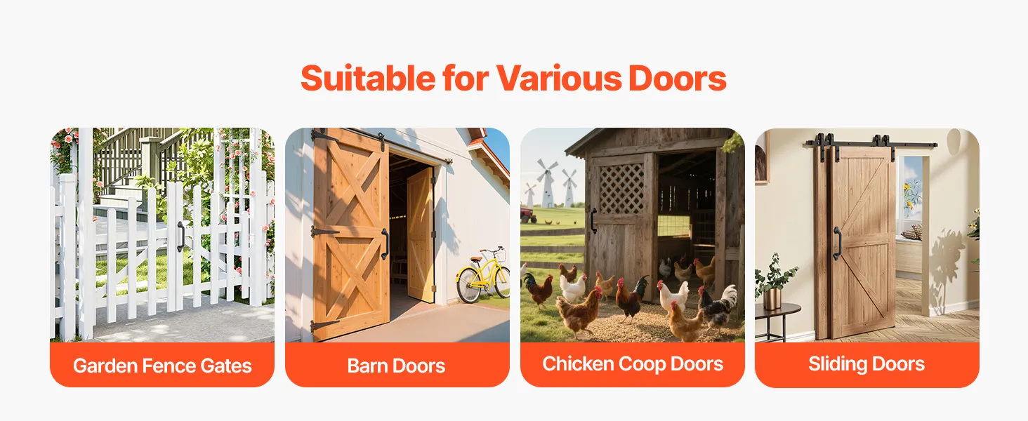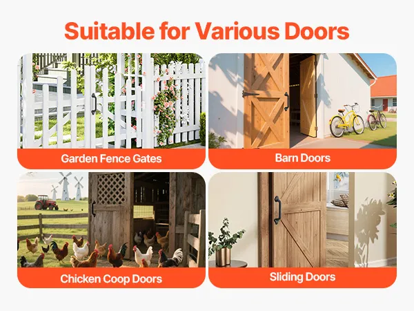 Klamka do drzwi stodołowych idealnie nadaje się do bram ogrodzeniowych, drzwi do stodół, szop na narzędzia, bram ogrodowych i drzwi podwórzowych. Można ją łatwo dopasować do różnych typów drzwi.
