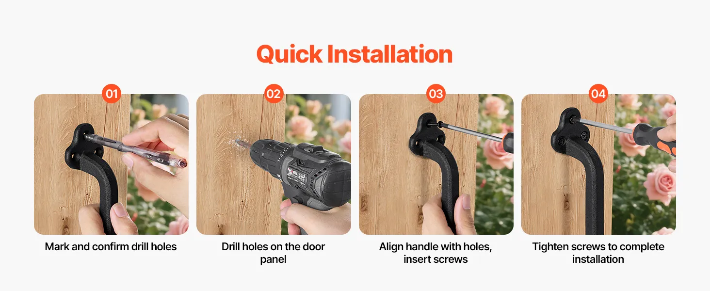 Łatwy montaż: Nasza klamka do bramy zewnętrznej jest wyposażona w śruby montażowe, co umożliwia szybki montaż bez użycia narzędzi. Nadaje się do drzwi wewnętrznych sypialni i kuchni, a także do zewnętrznych drzwi ogrodzeniowych, kurników, garaży, drzwi przesuwnych i spichlerzy.