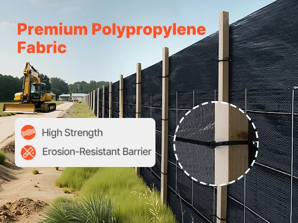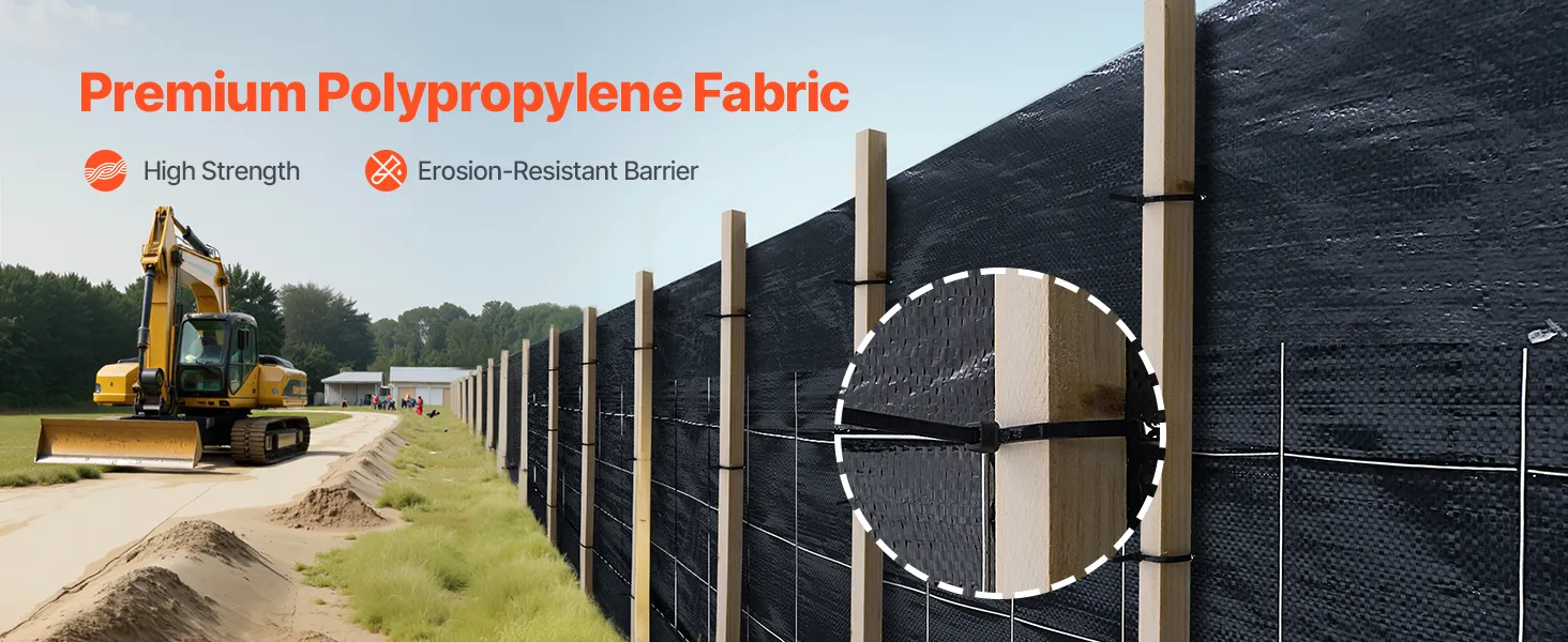 Ogrodzenie budowlane VEVOR, 0,6 x 30,48 m, ogrodzenie przeciwosadowe z podkładem z drutu, ogrodzenie przeciwerozyjne do zatrzymywania osadów, tymczasowa, wytrzymała tkanina polipropylenowa klasy przemysłowej na place budowy