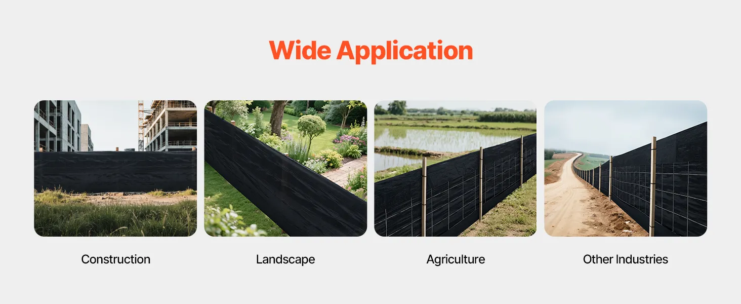Ogrodzenia zabezpieczające przed erozją doskonale sprawdzają się na placach budowy, przy pracach drogowych, jako bariery ogrodowe, zabezpieczenie gospodarstw rolnych i wiele innych zastosowań w celu kontroli osadów i grodzenia w różnych środowiskach.