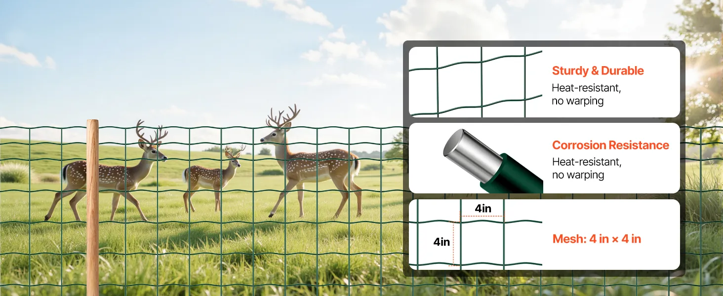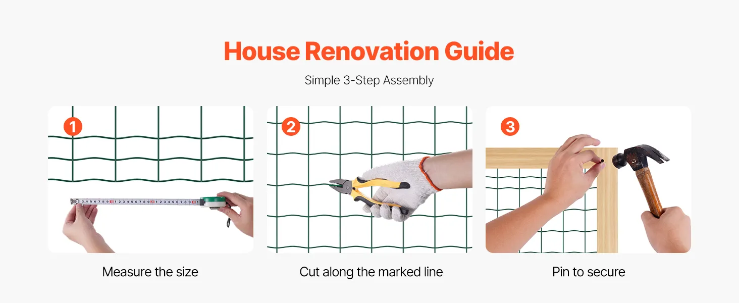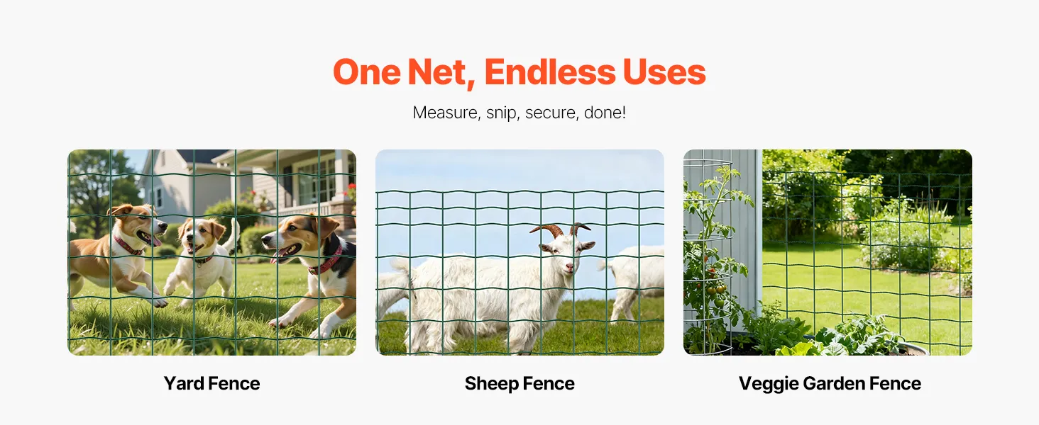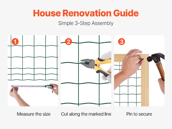 Łatwy montaż: Lekka konstrukcja rolowana z dołączonymi obcinakami do drutu stalowego i rękawicami odpornymi na przecięcia. Nie wymaga dodatkowych narzędzi. Spawane ogrodzenie dla kóz można zmontować w 15 minut, co ułatwia pracę nawet początkującym użytkownikom.