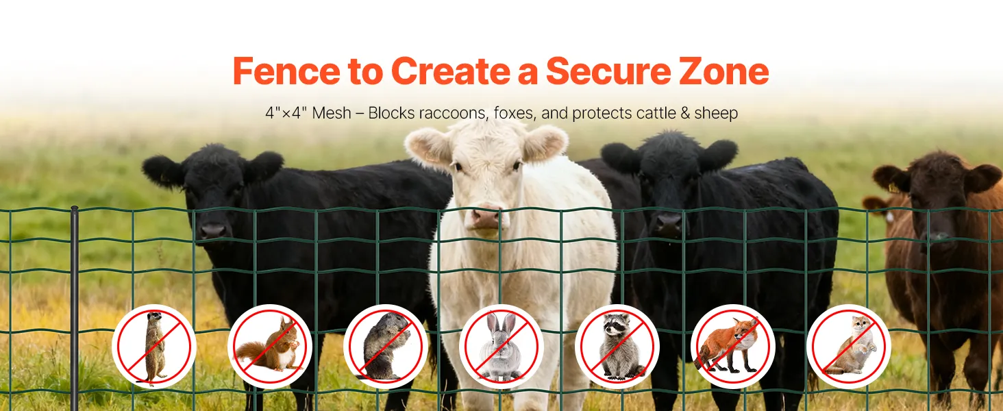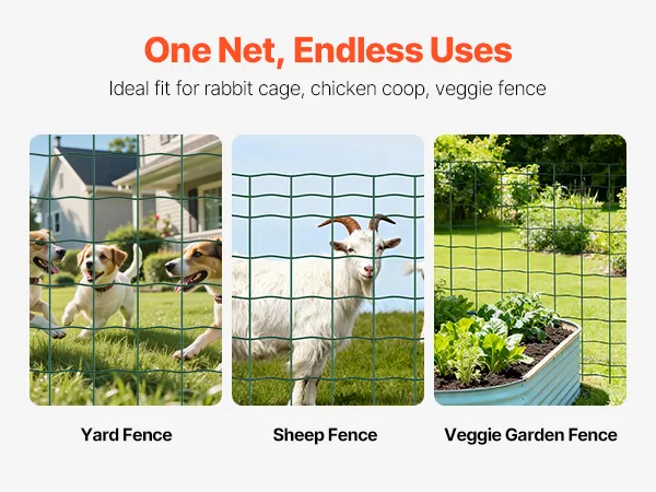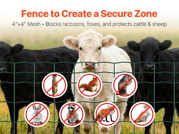 Bariera ochronna dla zwierząt gospodarskich: Siatka druciana o oczkach 4 x 4 cale (10,16 x 10,16 cm) idealnie nadaje się do stosowania na pastwiskach, w ogrodach i zagrodach dla zwierząt. Podwójna funkcja: chroni przed dzikimi zwierzętami i roślinami oraz zwierzętami domowymi przez cały rok. Jest bardziej wytrzymała niż tradycyjne ogrodzenia elektryczne, wytrzymuje uderzenia zwierząt gospodarskich i zachowuje swój kształt.