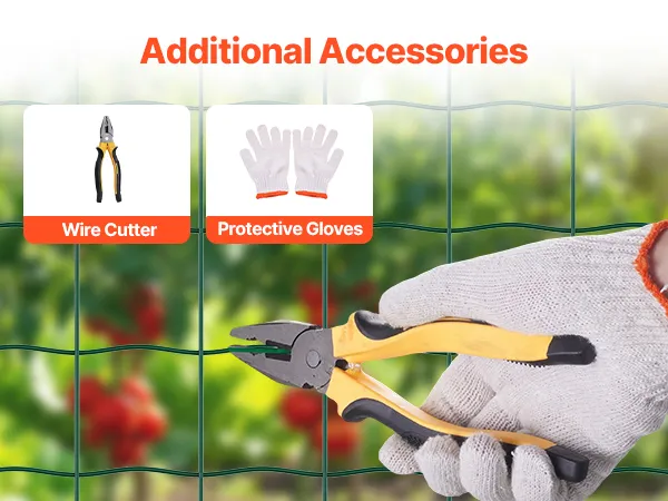 W zestawie znajduje się obcinak i para rękawic, za pomocą których można ciąć ściany, płoty lub klatki, w zależności od potrzeb.