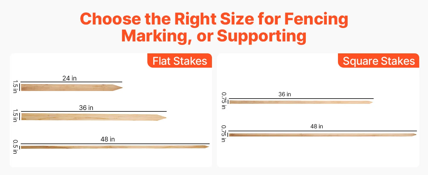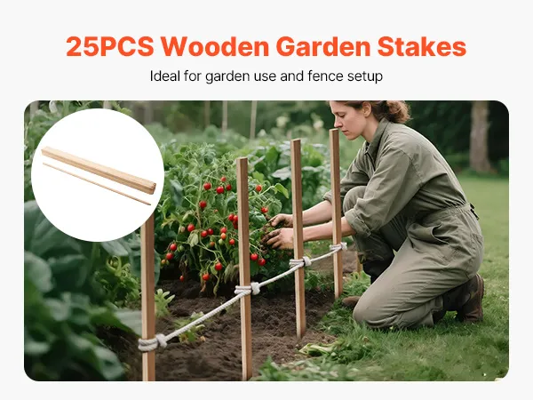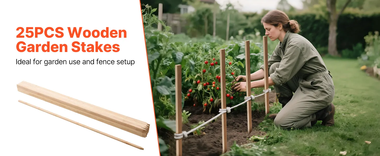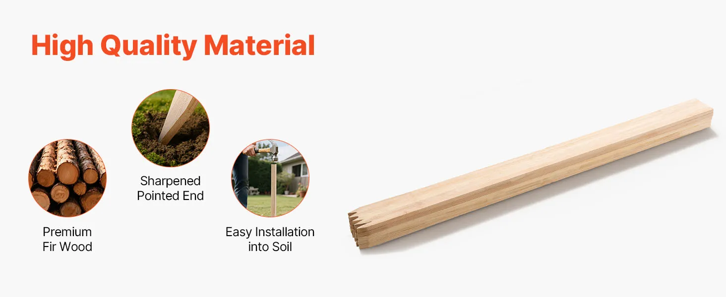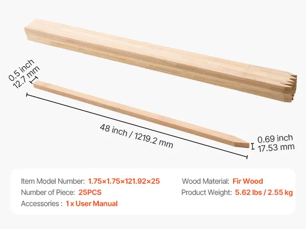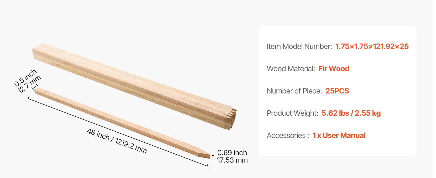 Słupki drewniane VEVOR, opakowanie 25 szt., 17,53 x 12,7 x 1219,2 mm, paliki drewniane, ostro zakończone słupki drewniane, słupki ogrodzeniowe z drewna jodłowego, znaczniki ogrodzeń z błota, granice podwórek, linie bazowe