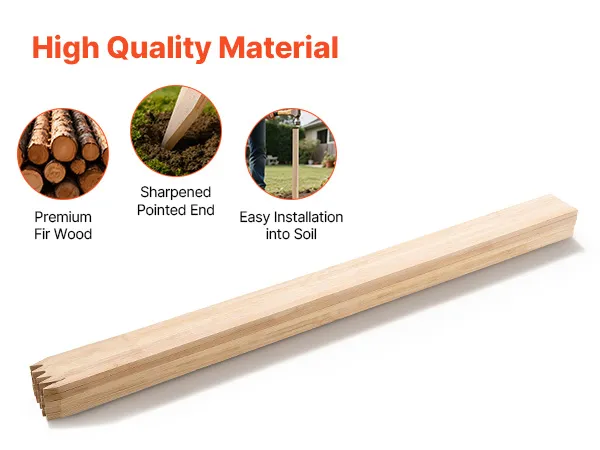 Wysokiej jakości drewno jodłowe: Wykonane z naturalnego drewna jodłowego, te drewniane paliki idealnie nadają się do stosowania na zewnątrz, gwarantując długotrwałą wytrzymałość i bezpieczeństwo.