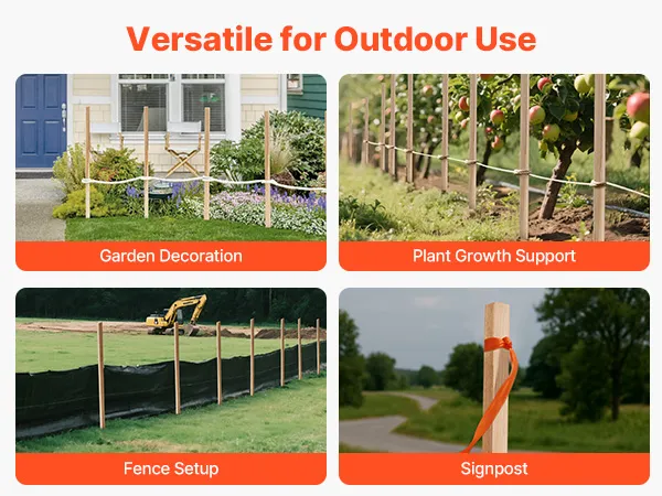 Różne rozmiary: Te drewniane słupki ogrodzeniowe są dostępne w różnych długościach i szerokościach, dzięki czemu pasują do roślin o różnej wysokości, konstrukcji ogrodzeniowych lub projektów dekoracyjnych, spełniając różne potrzeby.
