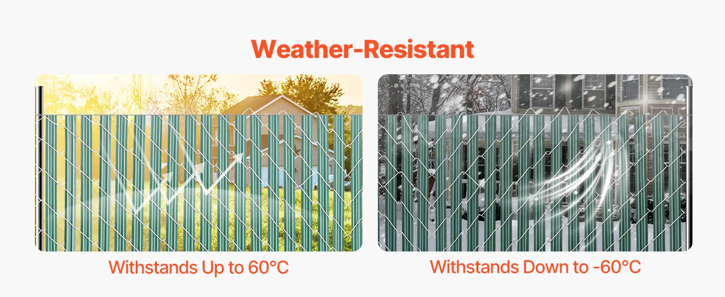Siatkowe listwy zapewniające prywatność są odporne zarówno na wysokie temperatury, jak i niskie temperatury. Nie tylko blokują szkodliwe promienie słoneczne, ale również pozostają stabilne i trwałe w niskich temperaturach.
