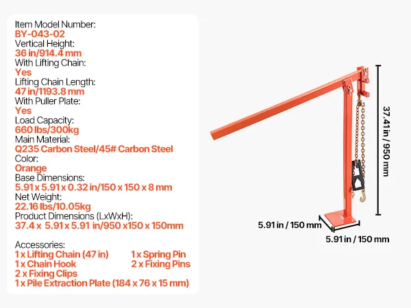Wyciągacz słupków T VEVOR 914,4 mm, wyciągacz słupków ogrodzeniowych o udźwigu 500 kg, wyciągacz słupków ogrodzeniowych z płytą do wyciągania i łańcuchem podnoszącym, narzędzie do demontażu słupków T do okrągłych słupków ogrodzeniowych, drogowskazów i pni drzew