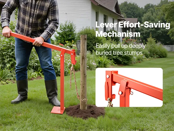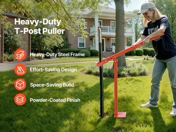 Konstrukcja oszczędzająca dźwignię: Ten wyciągacz słupków ogrodzeniowych jest wyposażony w energooszczędny mechanizm dźwigniowy, oferujący maksymalną siłę przy minimalnym wysiłku. Pozwala to na wydajne usuwanie słupków T, słupków ogrodzeniowych, a nawet uporczywych pni drzew, jednocześnie zmniejszając obciążenie pracą.