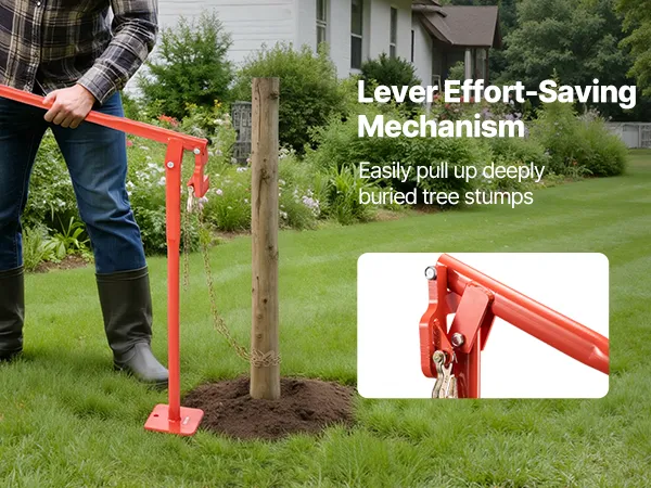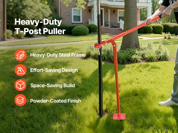 Konstrukcja oszczędzająca dźwignię: Ten wyciągacz słupków ogrodzeniowych jest wyposażony w energooszczędny mechanizm dźwigniowy, oferujący maksymalną siłę przy minimalnym wysiłku. Pozwala to na wydajne usuwanie słupków T, słupków ogrodzeniowych, a nawet uporczywych pni drzew, jednocześnie zmniejszając obciążenie pracą.