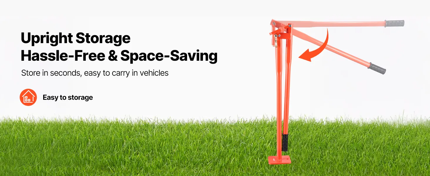 Ten wyciągacz słupków T ma pionową konstrukcję, dzięki czemu po użyciu można go postawić pionowo przy ścianie, oszczędzając miejsce. Nie wymaga demontażu; można go wygodnie przewozić w pojeździe, co umożliwia łatwe i bezproblemowe przechowywanie i transport.