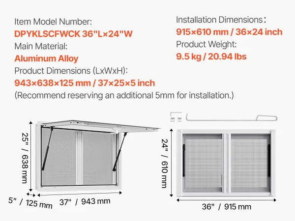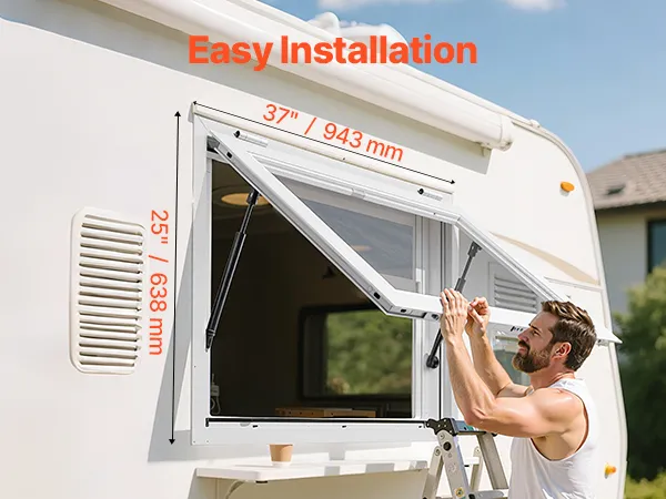 A1: Ścisła kontrola rozmiaru! Wymiary montażowe ramy okna wynoszą 36 x 24 cale (915 x 610 mm), co jest odpowiednie dla standardowych otworów w food truckach/ladach. Przed zakupem należy zmierzyć przestrzeń montażową.